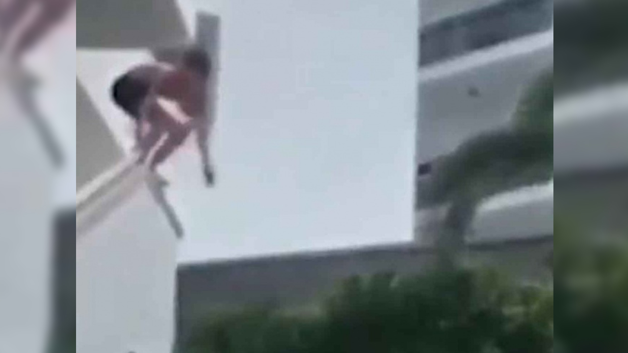 De acuerdo con información de medios locales, al ver las grabaciones de las cámaras de vigilancia se puede observar al turista lanzándose desde una barandilla para aterrizar sobre un árbol.