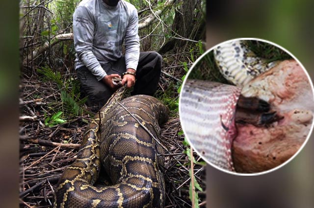 Un grupo de investigadores estadounidenses capturó en Florida una pitón de Birmania de 3,35 metros de largo que había devorado un ciervo de cola blanca de 16 kilogramos, dos más de lo que pesaba el propio reptil. Según USA Today, este es el primer caso de este tipo conocido por la ciencia.