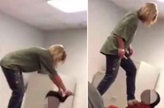 En las imágenes se aprecia a la maestra mientras golpea al alumno para intentar despertarlo.
