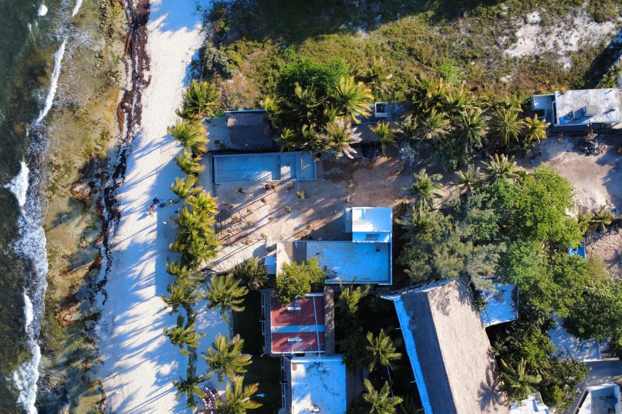 Acto 3: Pero la realidad, siempre inoportuna, hace su entrada. Quintana Roo Hoy documenta que los sellos ya no están y que, lejos de cualquier suspensión, hay trabajadores operando con total normalidad. El dron no miente: la escena parece más “obra en progreso” que “clausura oficial”.