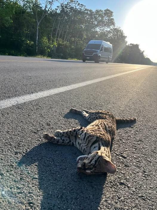Playa del Carmen.— Un ocelote hembra perdió la vida la mañana de este sábado tras ser atropellado en la carretera de cuota que conecta Playa del Carmen con El Tintal, a aproximadamente 10 kilómetros de la ciudad, en una zona rodeada de selva.