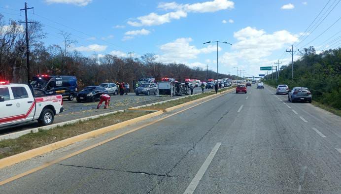 Debido al accidente, ambos carriles con dirección a Tulum fueron cerrados temporalmente, mientras grúas realizaban el retiro de las unidades involucradas.