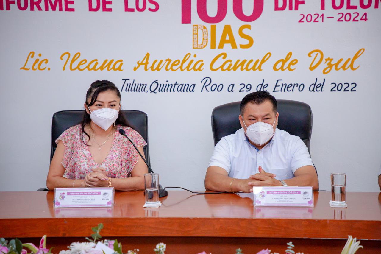 Tulum.- Al encabezar su mensaje con motivo a los primeros 100 días de actividades con sentido humanista, la presidenta honoraria del sistema DIF-Tulum, Lic. Ileana Canul de Dzul, enumero con alegría y beneplácito cada una de las acciones emprendidas desde la loable institución y que puso en el centro el amor al prójimo e impulsó la Cuarta Transformación.