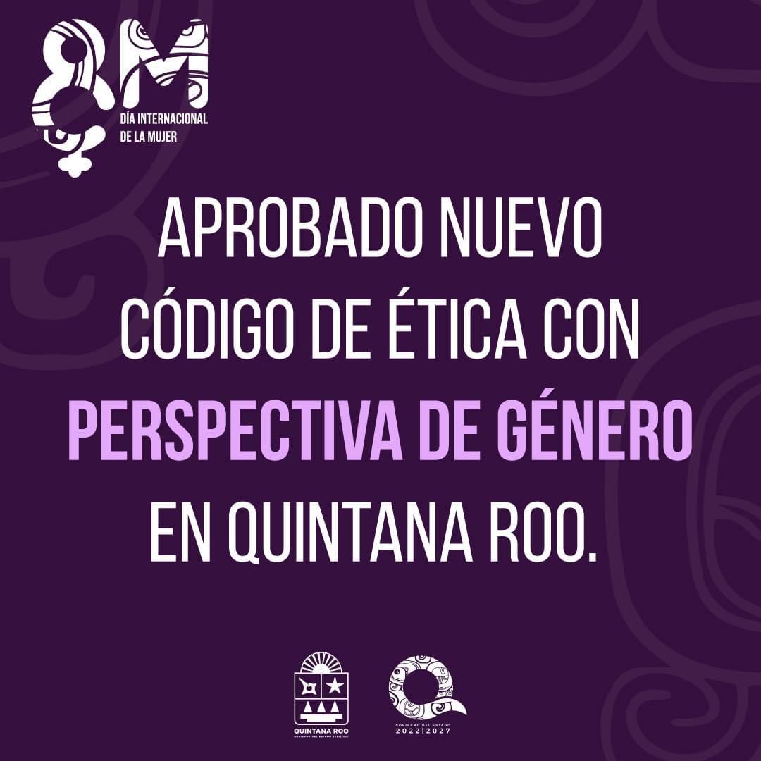 La publicación de este nuevo Código de Ética se realiza en el marco del Día Internacional de la Mujer y con base en el Nuevo Acuerdo por el Bienestar y Desarrollo de Quintana Roo que contempla el impulso a la equidad de género y la erradicación de la violencia.