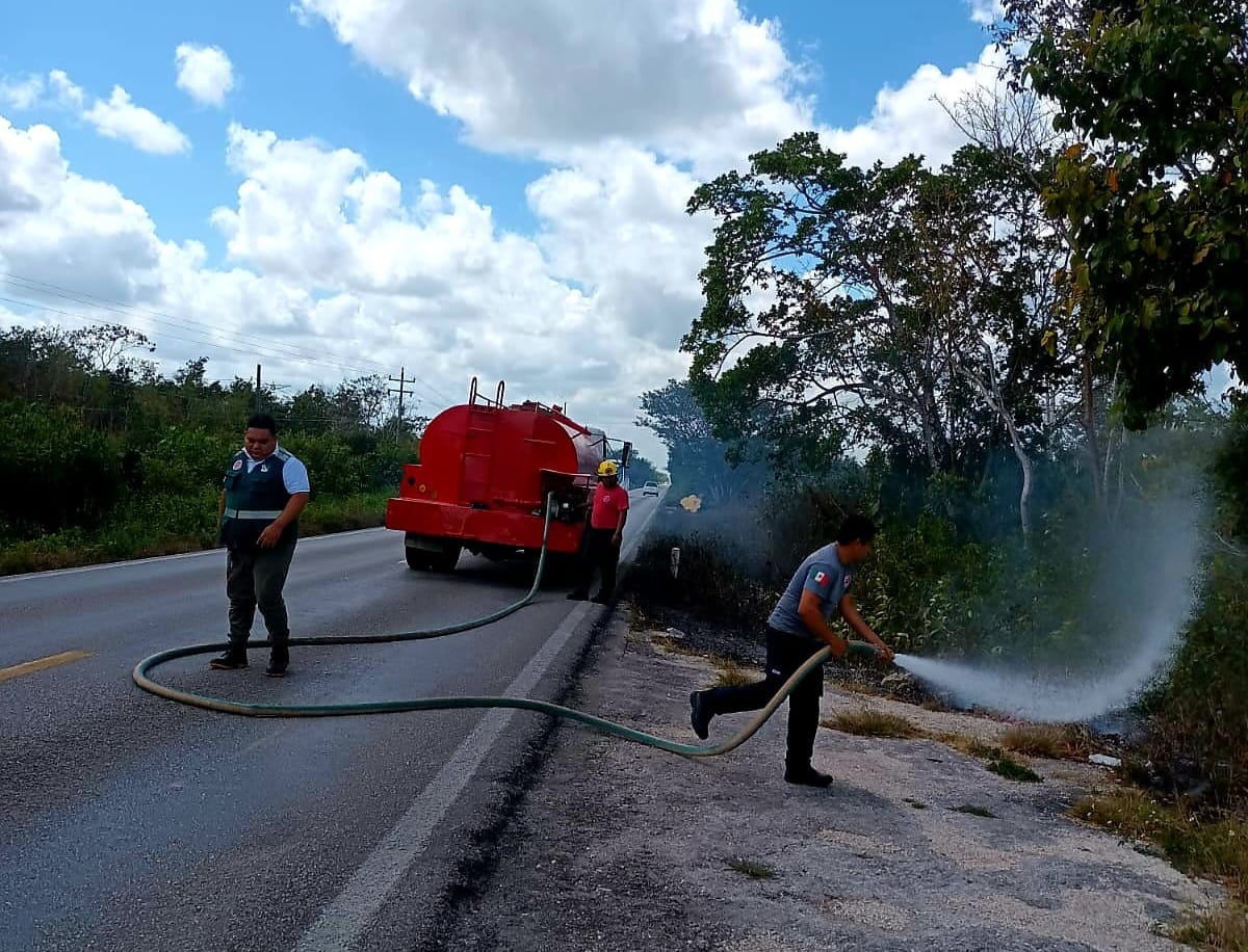 El primero se registró en el kilómetro 270 de la carretera federal Cancún-Mérida. El área afectada fue de aproximadamente 150 metros cuadrados. Para sofocarlo participaron siete personas, que utilizaron la pipa de Bomberos para realizar su trabajo con éxito.