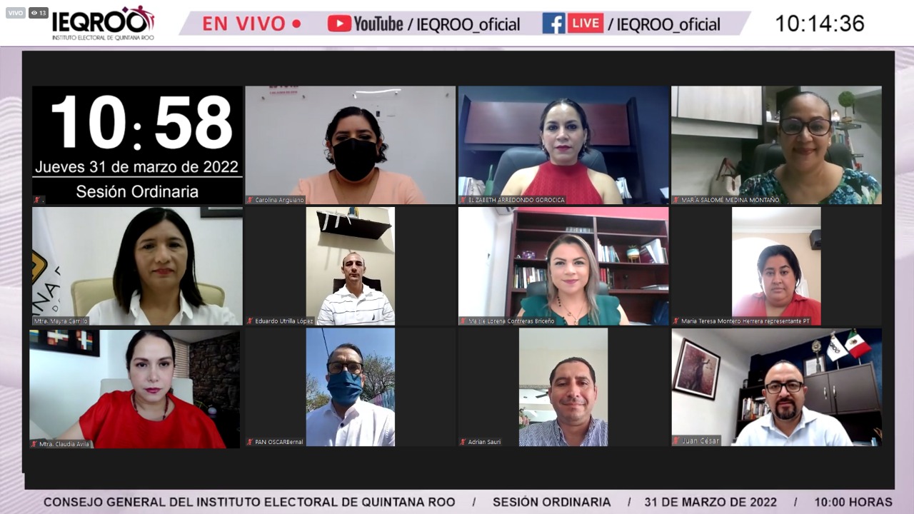 CHETUMAL.- El Instituto Electoral de Quintana Roo (IEQROO), en Sesión Ordinaria del Consejo General se aprobó el Manual para el desarrollo de las sesiones de cómputo de los resultados de las consultas populares a efectuarse el 5 de junio del año 2022, en los municipios de Benito Juárez, Isla Mujeres, Solidaridad y Puerto Morelos.
