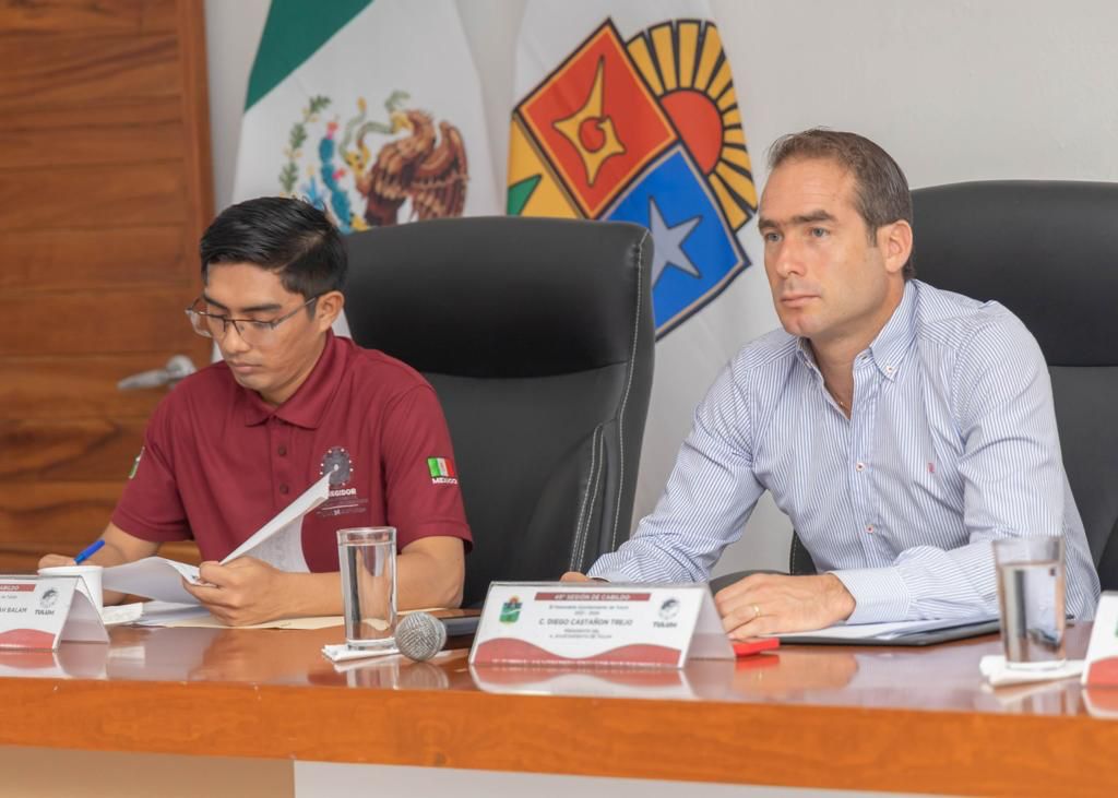 Tulum.- En la Cuadragésima Quinta Sesión Ordinaria de Cabildo, la síndico y regidores encabezados por el Presidente Municipal, Diego Castañón Trejo aprobaron el nombramiento de y le tomaron protesta a Silverio Cocom Xiu, como nuevo titular de la Unidad de Transparencia, Acceso a la Información Pública y Protección de Datos Personales del municipio, además del Nuevo Reglamento Interior de la Secretaría de Seguridad Pública y dejaron sin efecto la elaboración de un Plan Integral de Movilidad Urbana.