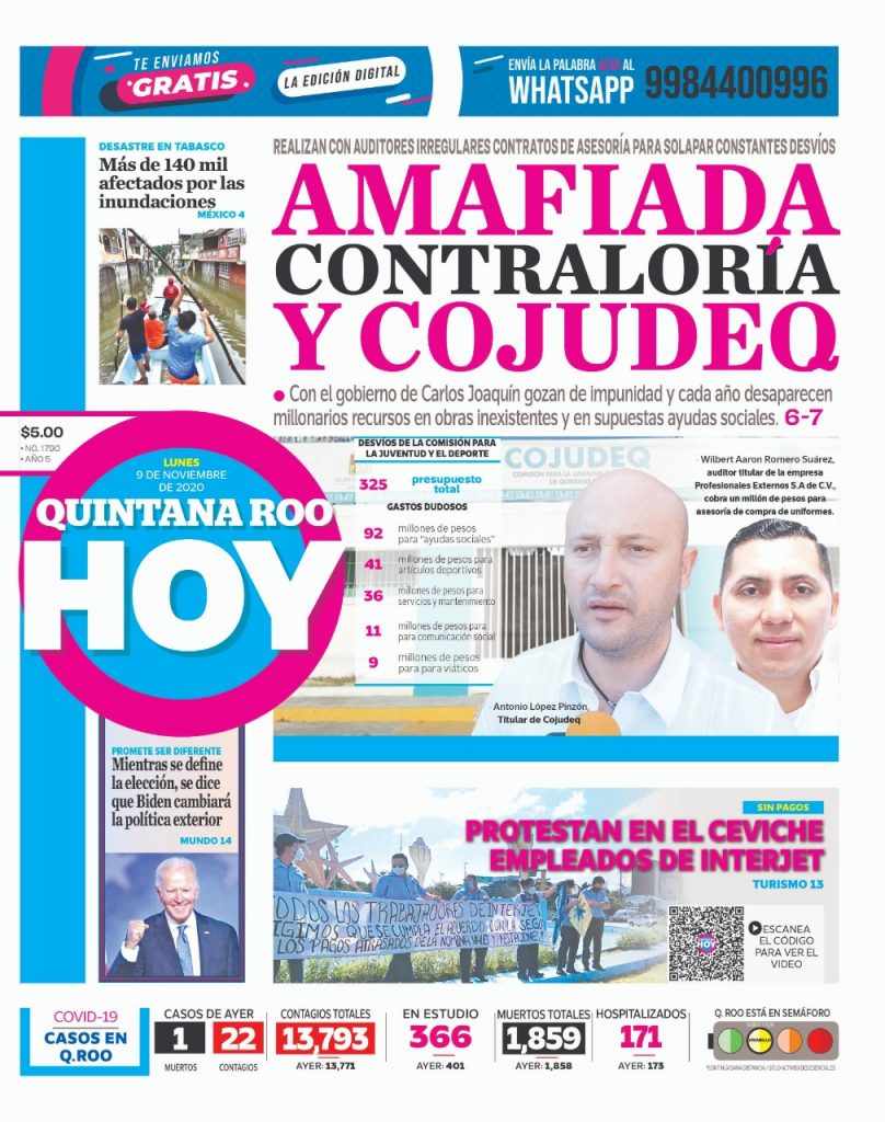 CANCÚN. Una de las dependencias con mayor presupuesto es la Comisión para la Juventud y el Deportes de Quintana Roo (Cojudeq), que encabeza Antonio López Pinzón, sin embargo, continúan los malos resultados y gastos sin comprobar como el caso de los 227 millones que supuestamente se aplicaron este año para la capacitación de entrenadores, pago de becas y la impartición de cursos, cuando este año no hubo ningún evento deportivo.