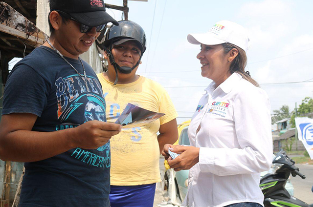 CHETUMAL. Iniciando en la Avenida Chetumal con calle 6 de octubre, la candidata a Diputada local por el distrito XV por la coalición “Orden y Desarrollo por Quintana Roo”, Claudette González Arellano, recorrió las calles de la colonia Nueva Esperanza, saludando casa por casa a los vecinos.