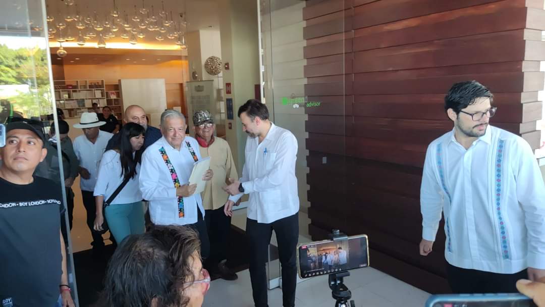 “Le tengo mucha confianza a Mara Lezama, ella va a intervenir de la mejor manera para que no haya confrontación, haya diálogo, amor y paz”, mencionó el mandatario federal en una breve entrevista antes de comenzar a recorrer las obras del Tren Maya.