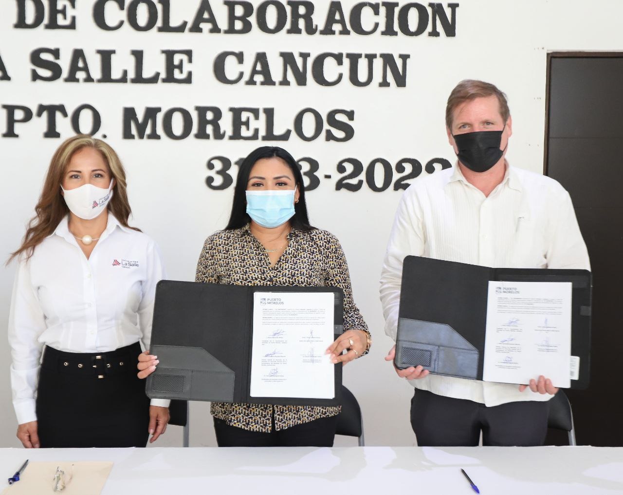 PUERTO MORELOS. Educación y capacitación son herramientas fundamentales para el desarrollo económico y social de cualquier municipio, estado o país, por tal motivo en Puerto Morelos se firmó un convenio de colaboración con la Universidad La Salle de Cancún, que beneficiará a trabajadores del ayuntamiento y sus hijos, pero también a la comunidad en general.