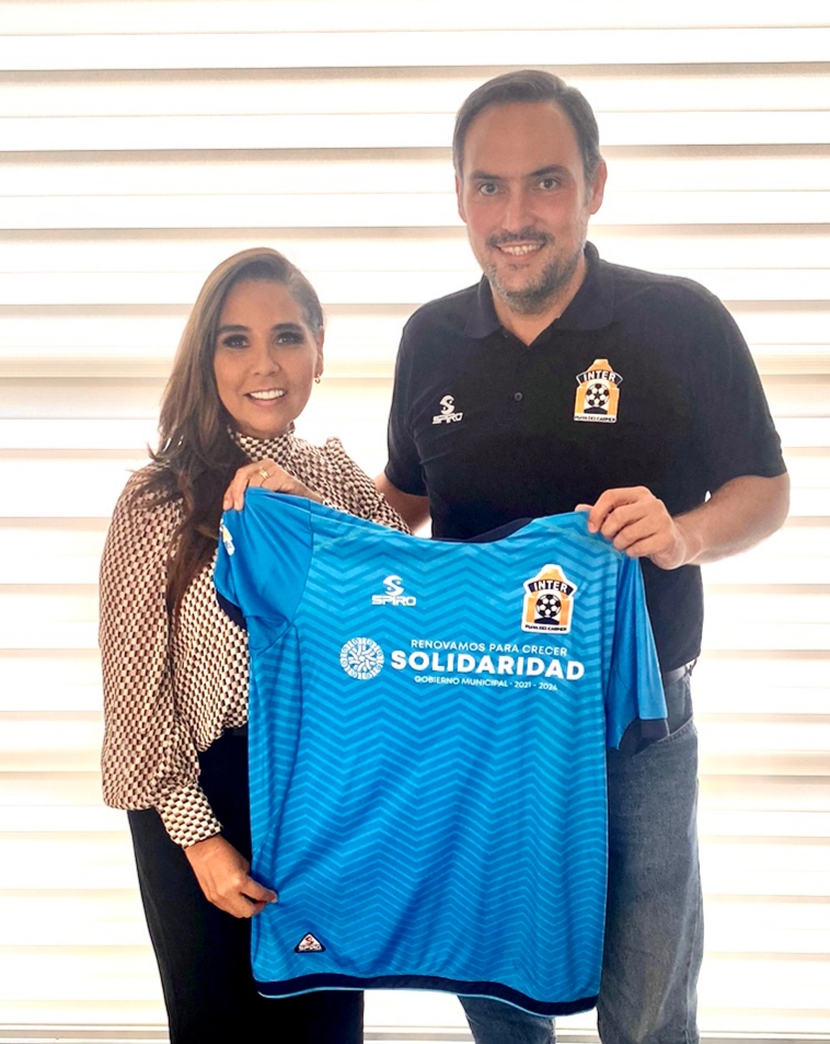 Por su parte, Amador Gutiérrez, agradeció el diálogo con la gobernadora y su apertura, aseveró que “es una persona que gusta y apoya mucho al deporte, le gusta el futbol, es por ello que le entregamos la camiseta de local del Inter Playa ya que es un equipo con mucha historia en Quintana Roo y esta por cumplir 24 años; además que está en constante renovación y llamado a ir hacia adelante, para crecer y escalar en las ramas profesionales.”