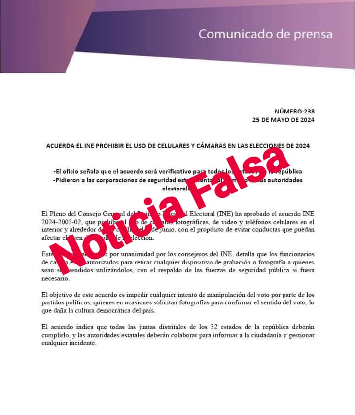 El falso comunicado señalaba que los funcionarios de casilla estaban autorizados para retirar cualquier dispositivo de grabación o fotografía a quienes fueran sorprendidos utilizándolos.