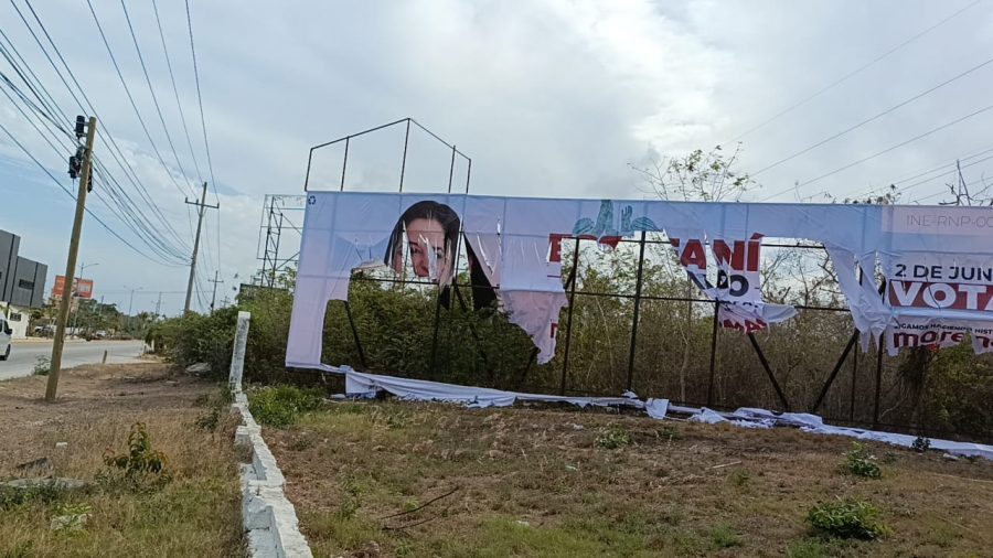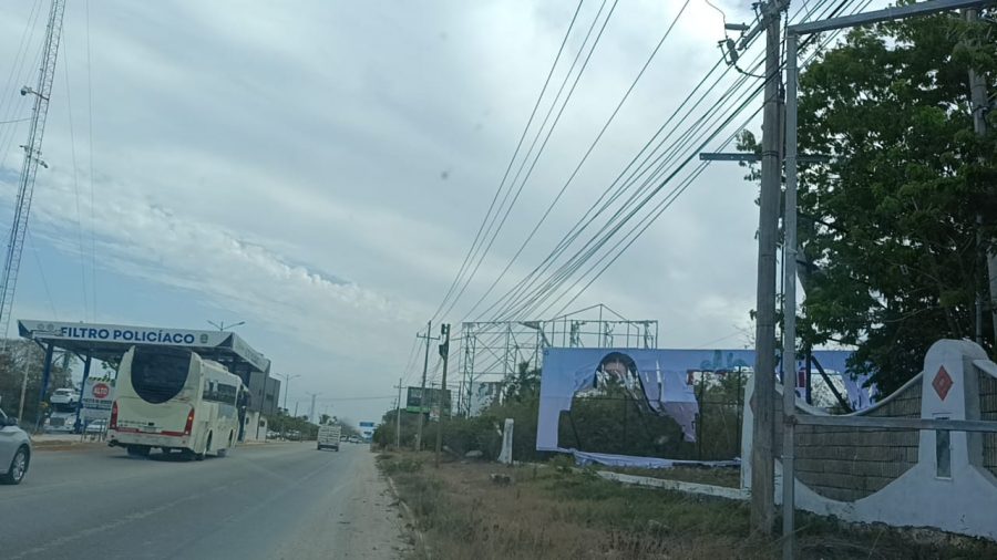 PLAYA DEL CARMEN.- A unos metros del filtro policiaco ubicado en el Norte de la ciudad, hacia la salida de Cancún, desconocidos vandalizaron un espectacular con propaganda política de Estefanía Mercado, sin que los agentes destacamentados en ese punto de control se percataran.