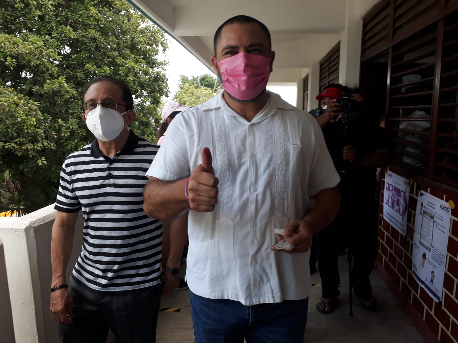 Antes de entrar a la casilla, atendió a los reporteros donde dijo ser respetuoso de los temas legales y hasta el momento no hay incidentes en la votación.