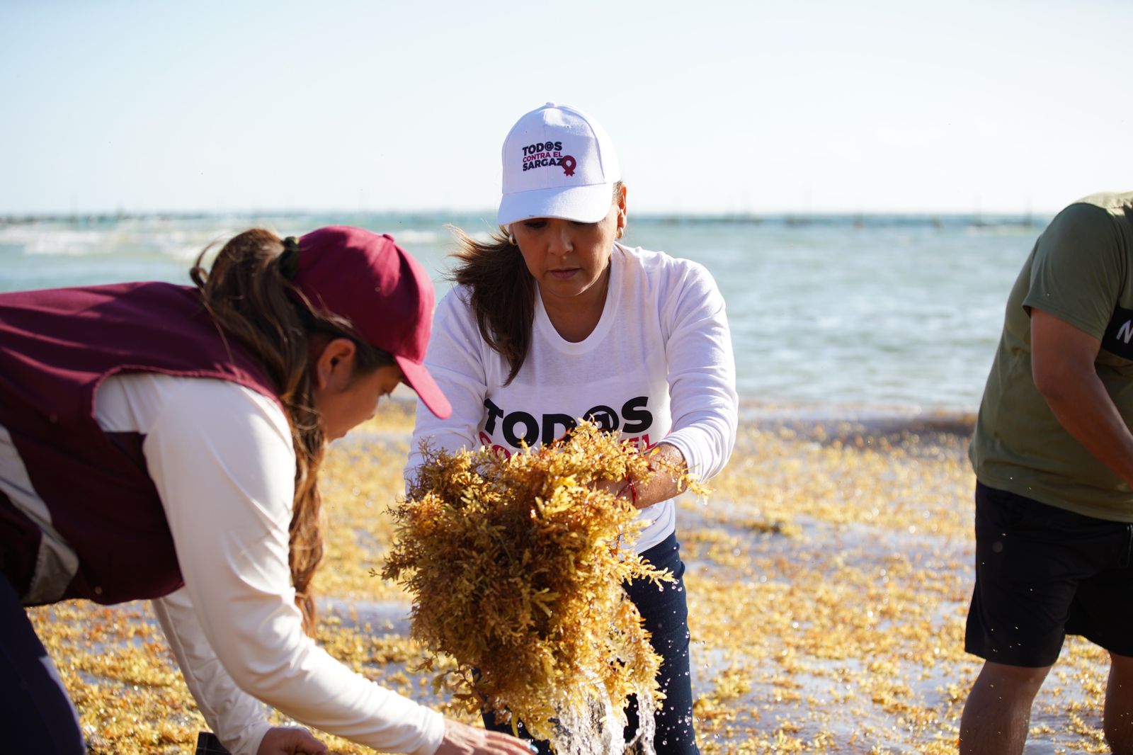 “Un reto nos reúne: ganarle la batalla a un enemigo recurrente que nos afecta en lo ambiental, en lo económico y en la imagen de nuestros destinos turísticos: el recale del sargazo” explicó la titular del Ejecutivo al destacar la suma de esfuerzos de todos los sectores sociales y económicos en respuesta al Nuevo Acuerdo por el Bienestar y Desarrollo al que convocó desde el inicio de esta nueva administración.