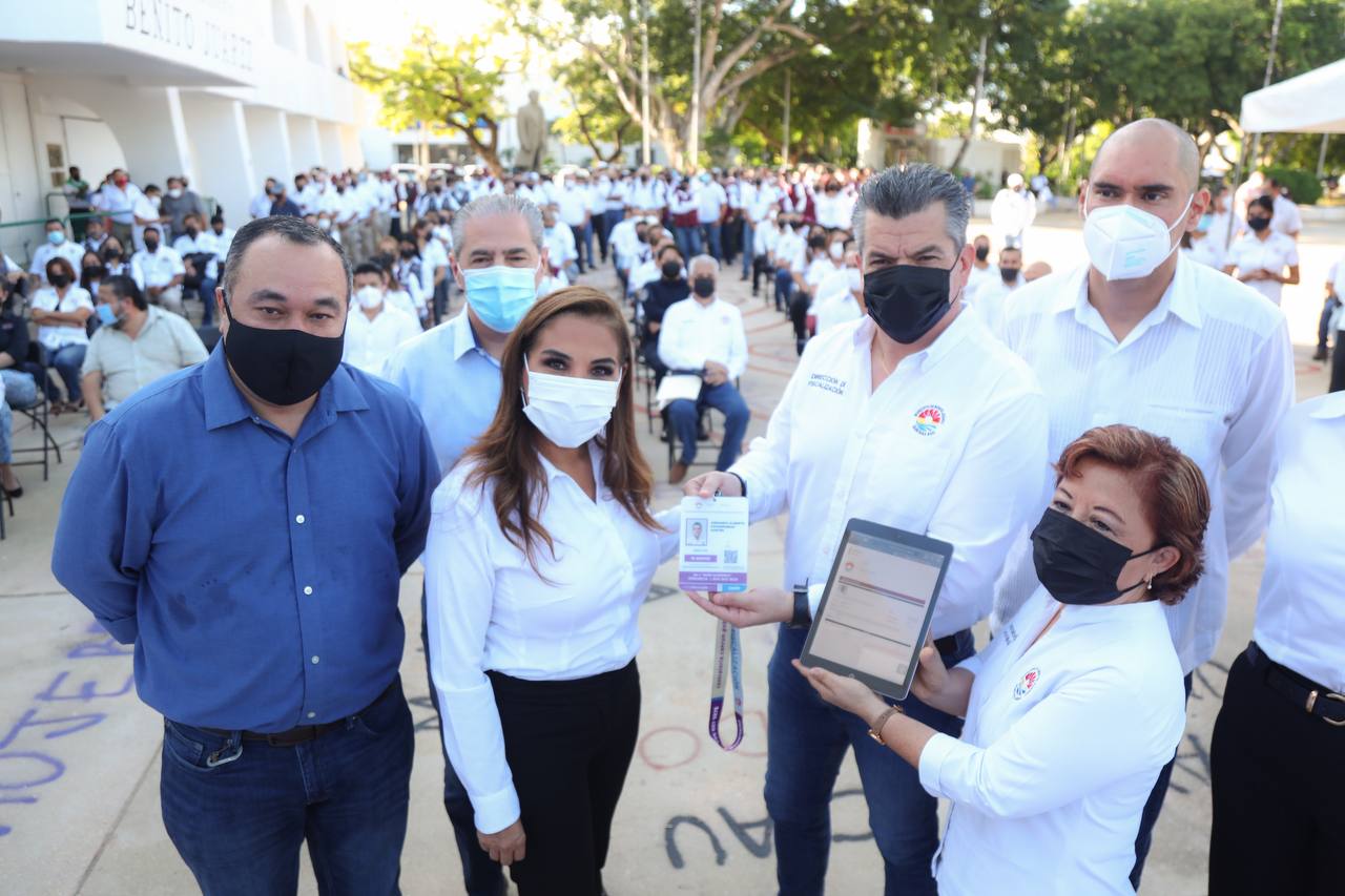 Mara Lezama realizó la entrega simbólica de gafetes a inspectores y personal relativo a esa función de 10 diferentes áreas que forman parte de la primera fase, mientras que seguirán 900 más para agentes de Tránsito y personal de atención al público.