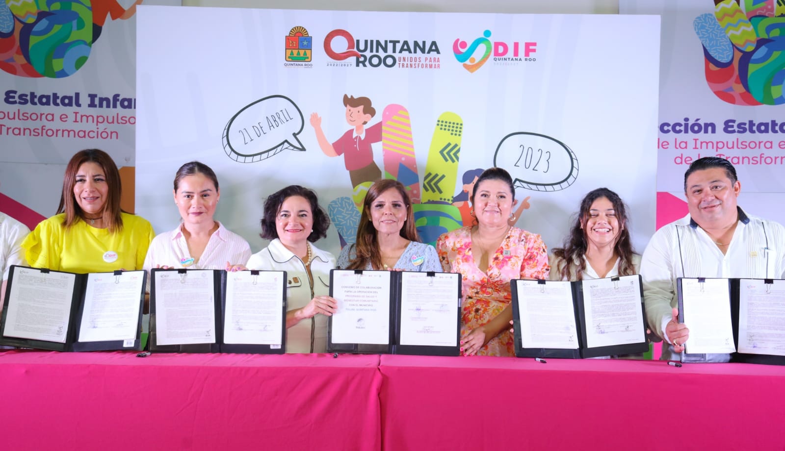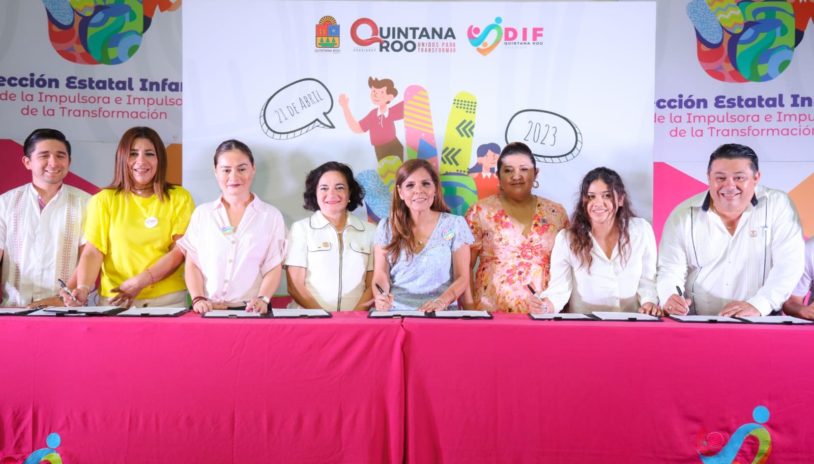 Cozumel.- En el marco de los Derechos de la Infancia firma DIF Quintana Roo convenio con los 11 municipios de la entidad sobre las Reglas de Operación de los Programas de la Estrategia Integral de Asistencia Social, Alimentación y Desarrollo Comunitario 2023, firmando este acuerdo como testigo de honor la Presidenta Honoraria, Verónica Lezama Espinosa.
