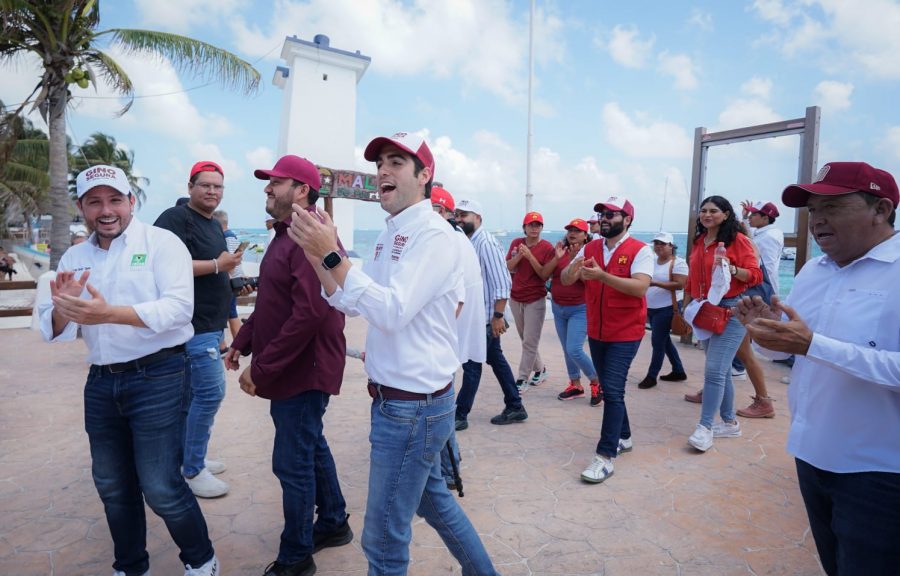 En una reciente jornada de actividades, Gino se reunió con comerciantes en Puerto Morelos, donde también compartió momentos con jóvenes en la plaza central. Su cercanía y disposición fueron evidentes al visitar las icónicas letras de Puerto Morelos, donde se tomó fotos con simpatizantes del partido MORENA, y ahí saludó a los restauranteros locales junto al Faro.