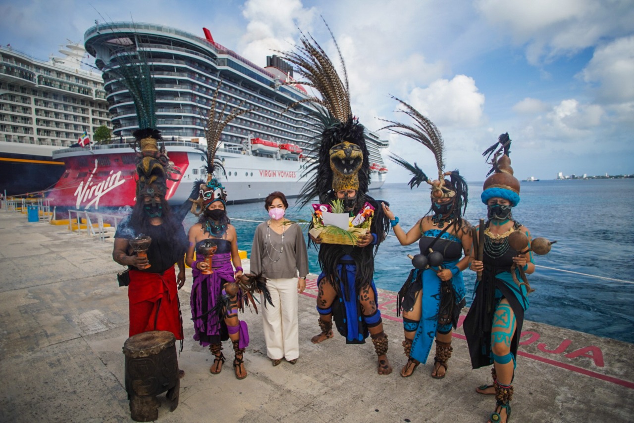 COZUMEL. – En su visita inaugural a la Isla de Cozumel, el crucero Scarlet Lady atracó en terminal marítima de Punta Langosta donde la presidenta municipal, Juanita Alonso Marrufo acompañada de autoridades de turismo dieron la bienvenida a los tripulantes y pasajeros de la embarcación de la naviera Virgin Voyager, que inició operaciones con la ruta por el Mar Caribe.
