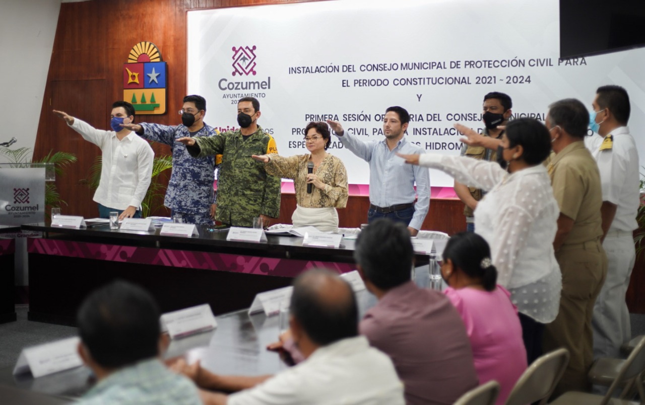 Cabe destacar que durante el evento la Presidenta municipal, Juanita Alonso Marrufo, encabezó la toma de protesta al Consejo Municipal de Protección Civil para el periodo 2021-2024, que también está integrado por el secretario general del Ayuntamiento de Cozumel, Renán Sánchez Tajonar; el director de Protección Civil, Bomberos y Guardavidas, Paul Quintero Marí; el General brigadier D.E.M., Irán moreno Gutiérrez, comandante Guarnición Militar; General de grupo P.A.D.E.M., Seidy Salvador Gallardo, comandante de la BAM No.4; el capitán de navío C.G. D.E.M., Jonathan Bobadilla Soto, en representación de comandante del sector naval, Enrique Ponce de León Castro; el Capitán de Fragata C.G. P.H., Ángel Osvaldo Molina Batis, coordinador regional de la Guardia Nacional; el director de Seguridad Pública y Tránsito, Rodrigo Rodríguez Peña; Capitán de Puerto, César Benjamín Ribero Cubillos; P.A.D.E.M., Jesús Ernesto Gallardo Berumen, comandante del Aeropuerto Internacional de Cozumel; el coordinador de Protección Civil Estatal, Adrián Martínez Ortega y la primera regidora, Ángela del Socorro Carrillo Chulim.