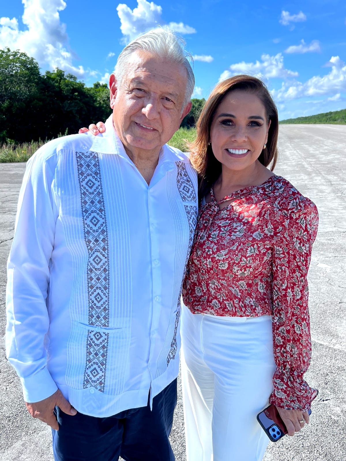 Durante la gira del mandatario federal por el sur del país, que realiza de manera constante para verificar los trabajos del Tren Maya, estuvo acompañado en Quintana Roo por la Gobernadora quien formó parte de la comitiva que sobrevoló la zona Maya de Felipe Carrillo Puerto a bordo de helicópteros de la Secretaría de Marina, en las cercanías de X-Hazil Sur.