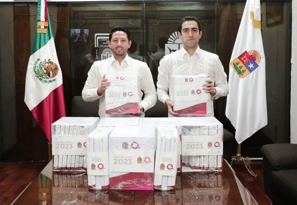 Chetumal.- El día de hoy, se dio puntual cumplimiento a lo dispuesto en los artículos 91 fracción VII y 118 de la Constitución Política del Estado Libre y Soberano de Quintana Roo, el Poder Ejecutivo Estatal, por conducto del Secretario de Finanzas y Planeación (SEFIPLAN), Eugenio Segura Vázquez, que hizo entrega ante las y los diputados que integran la Comisión de Hacienda, Presupuesto y Cuenta del Congreso del Estado la propuesta del Paquete Económico 2023 para su estudio, análisis, y posible aprobación.