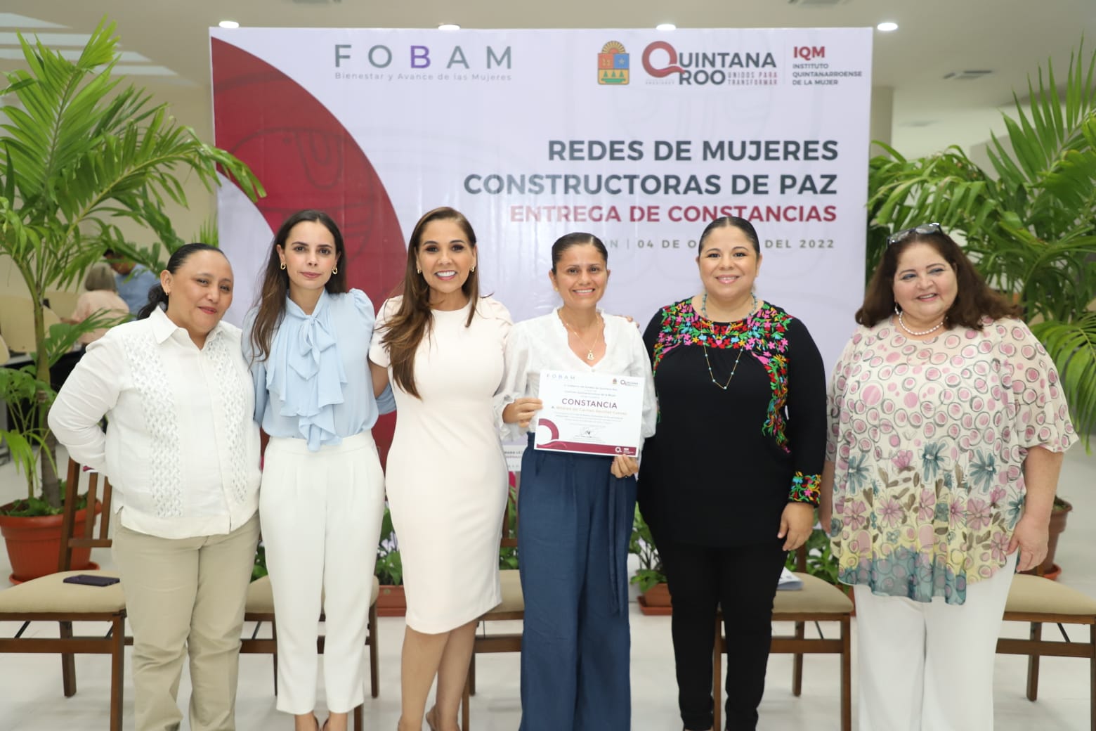 Acompañada de la presidenta municipal de Benito Juárez, Ana Patricia Peralta de la Peña; la secretaria de Gobierno, Cristina Torres y la directora del IQM, María Hadad Castillo, entregaron las constancias, a mujeres representantes de los 11 municipios del estado quienes forman parte de una red de 327 integrantes en la entidad.