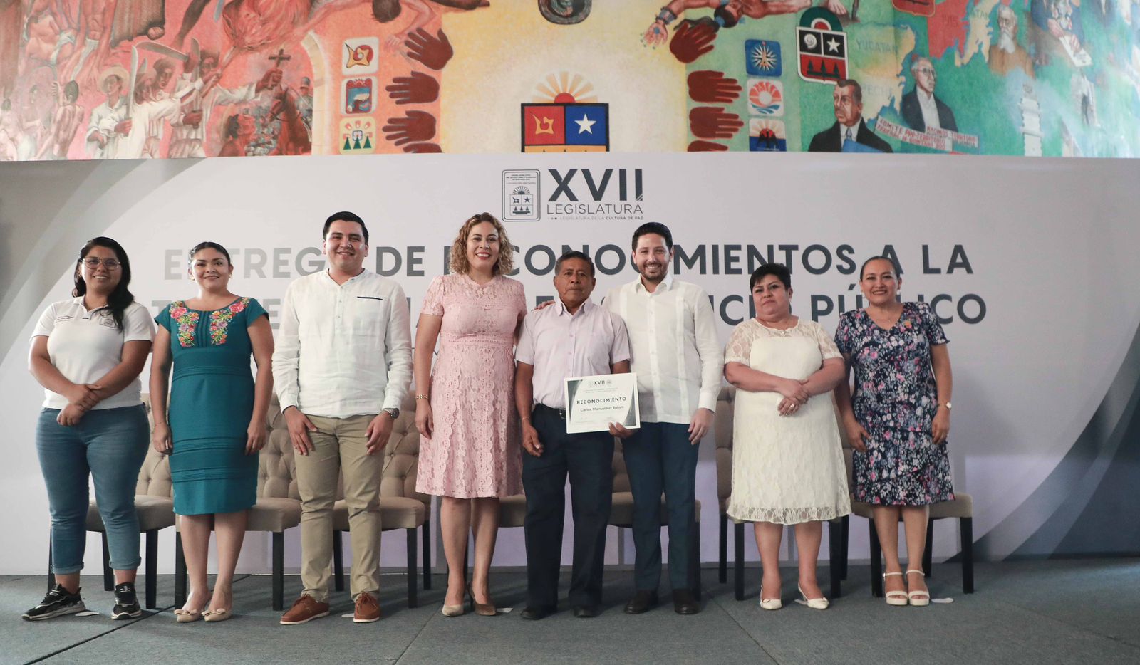 El líder del Congreso quintanarroense dedicó también unas palabras para la esposa, hijos y familiares de Marco Antonio Herrera Aguilar, compañero del Poder Legislativo que falleció en el mes de abril pero que este año cumplió 35 años de servicio en esta institución, siendo su esposa la señora Eloisa Isabel Aldana Guerrero quien recibió el reconocimiento póstumo.