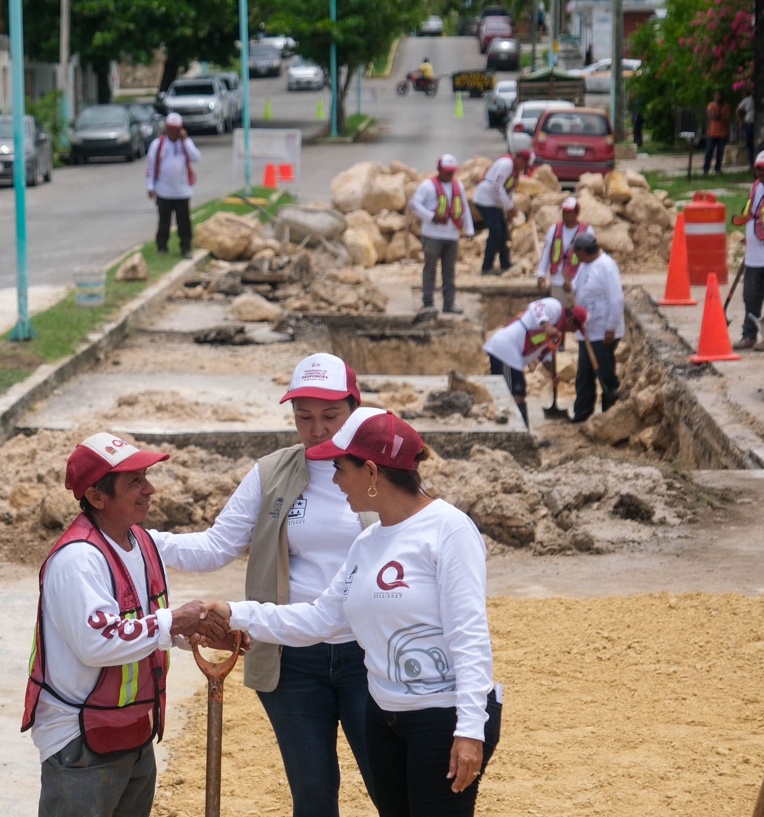 A través de la Secretaría de Obras Públicas (SEOP), se rehabilitan vialidades dañadas por desfondes en la Othón P. Blanco entre Reforma y Miguel Hidalgo; Othón P. Blanco entre Calzada Veracruz y Reforma; Calzada Veracruz esquina con Othón P. Blanco; José María Morelos entre Álvaro Obregón e Ignacio Zaragoza.