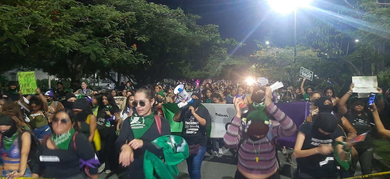 En Cancún 100 mujeres marcharon por las avenidas principales, entre ellas, la Bonampak y la Tulum hasta que llegar a la glorieta “El Ceviche” para realizar pintas con consignas a favor de la despenalización del aborto.