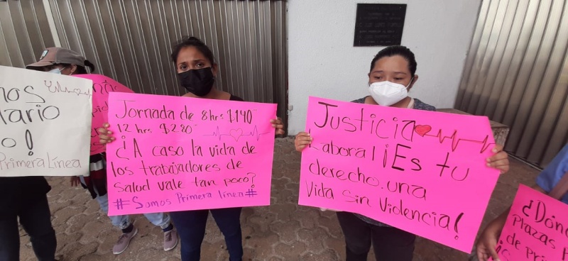 Los ponen a cargo del área Covid-19, donde tienen que doblar turno, los humillan y amenazan si levantan la voz, le pagan solo140 pesos el día a pesar que el Gobierno Federal implementó el aumento al salario mínimo hasta los 172 pesos, ellos siguen ganando menos que esta cantidad.