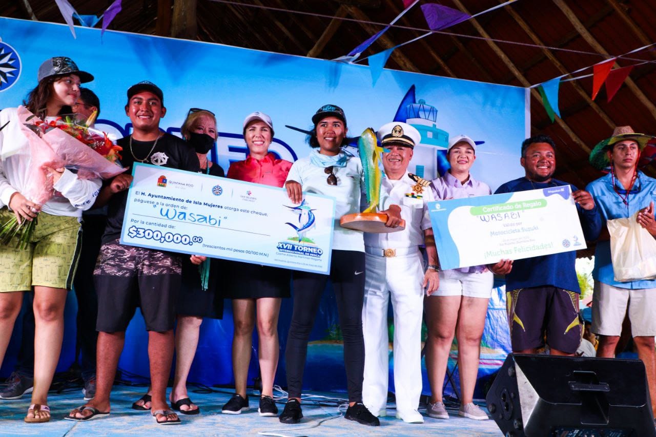 ISLA MUJERES.- Luego de dos días de intensa competencia en la mar, este domingo la presidente municipal de Isla Mujeres, Atenea Gómez Ricalde, premió a los ganadores del XVII Torneo Internacional de Pesca “Cosme Alberto Martínez Magaña”.