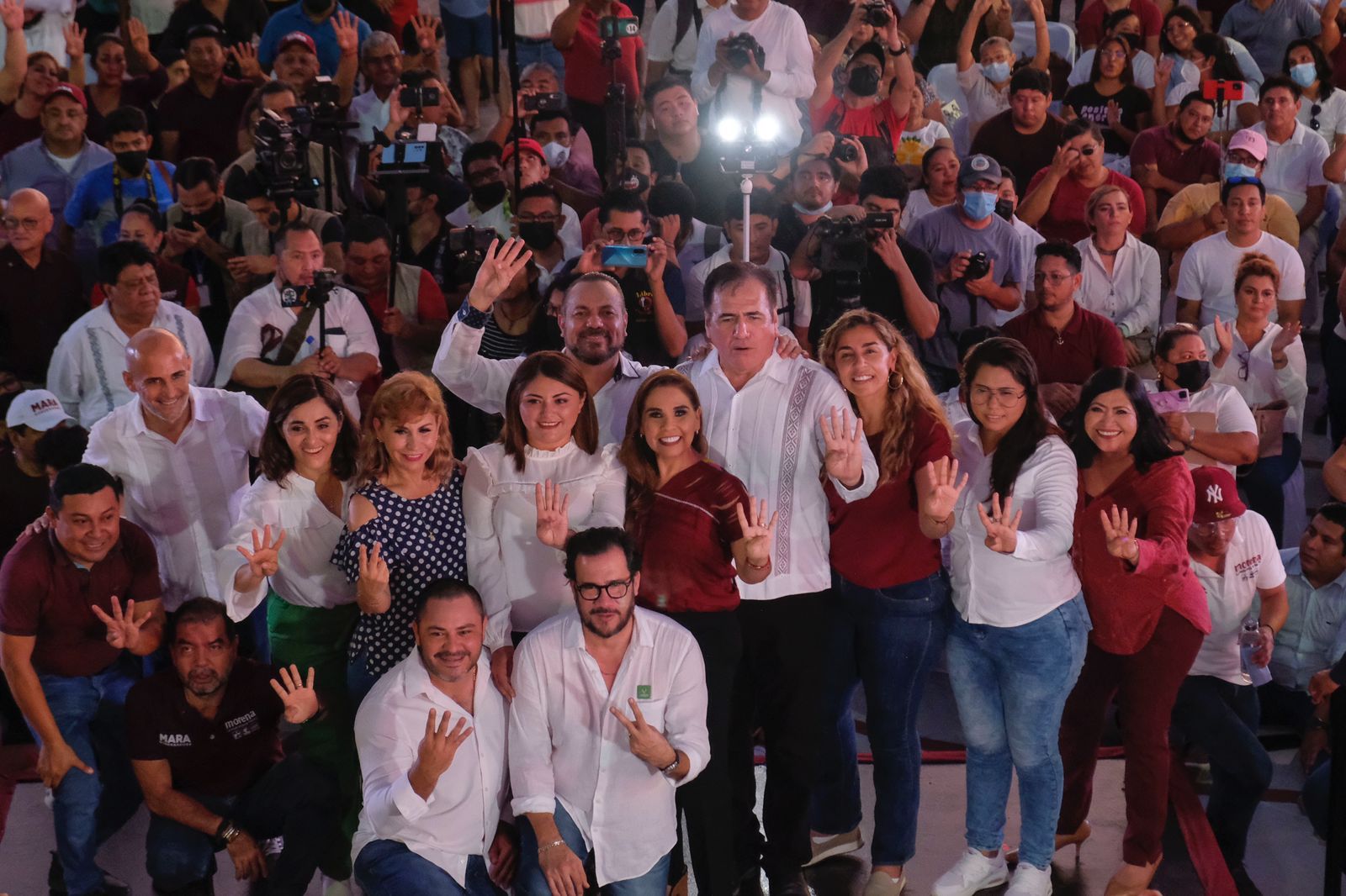 En un multitudinario mitin, entre porras y muestras de apoyo, Mara Lezama acudió acompañada de su familia y reiteró que los próximos cinco años serán los mejores en la historia de Benito Juárez y de Quintana Roo.