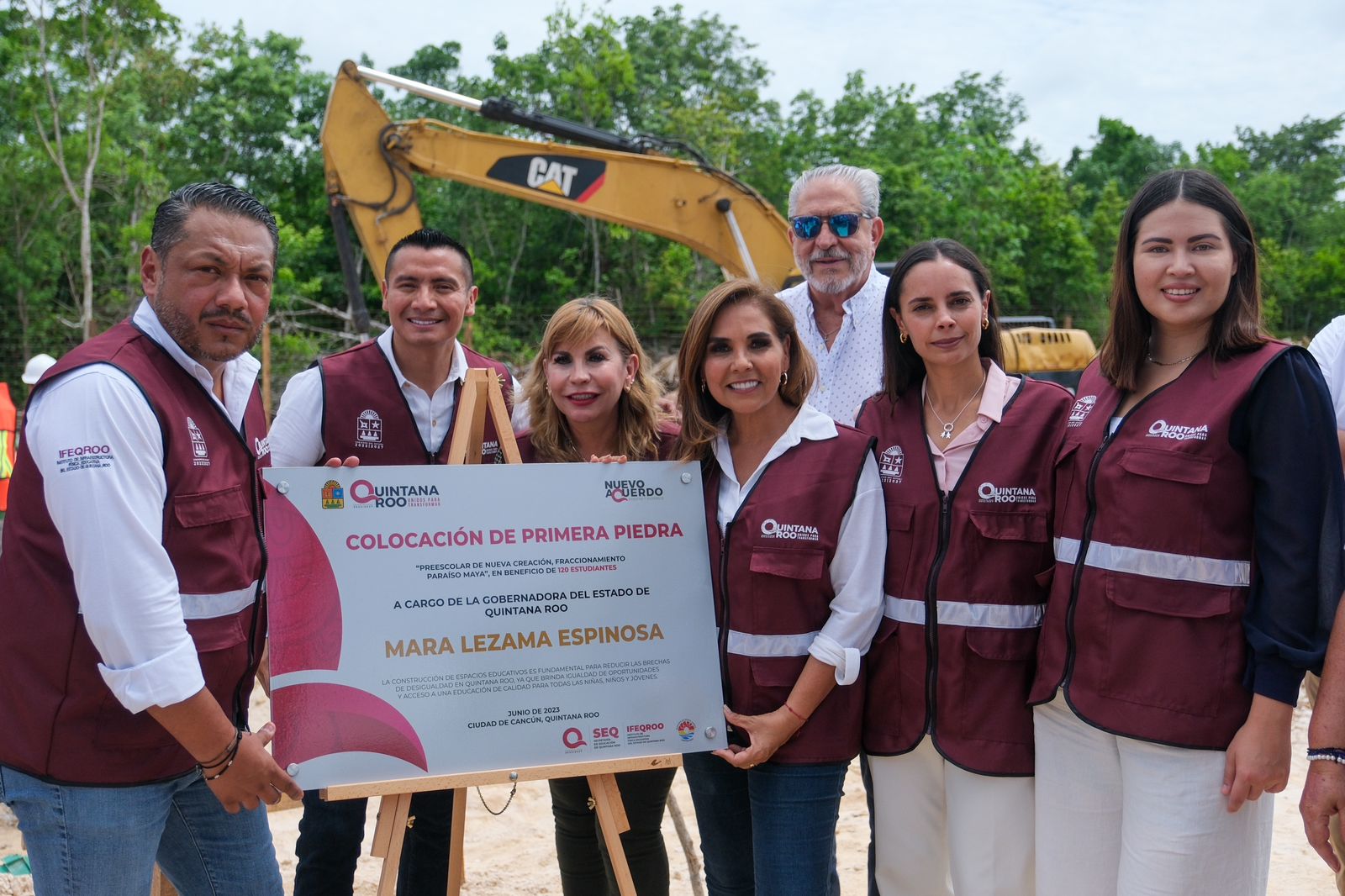 En la colocación de la primera piedra acompañaron a la gobernadora Mara Lezama la presidenta municipal Ana Paty Peralta de la Peña; el director del Ifeqroo José Rafael Lara Díaz; los diputados federales Anahí González Hernández y Alberto Batun Chulim, la diputada local Susana Hurtado Vallejo y la presidenta de la Asociación de Padres y Madres de Familia de Quintana Roo Cristal Ramírez Rosas.