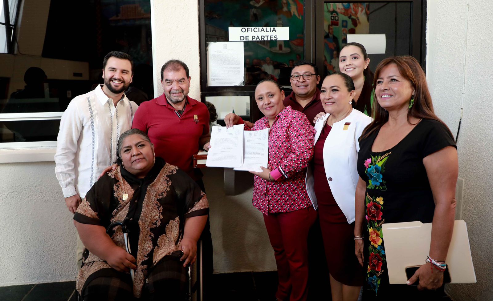 Los documentos fueron entregados por la secretaría de gobierno Cristina Torres Gómez, así como por los titulares de Medio Ambiente Josefina Huguette Hernández Gómez y del Deporte Eric Arcila Arjona.