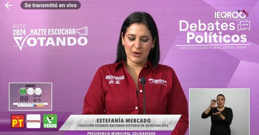PLAYA DEL CARMEN.- El debate entre los candidatos a la presidencia municipal de Solidaridad, organizado por el Instituto Electoral de Quintana Roo, se puso intenso, debido al cruce de acusaciones entre las abanderadas del PRI-PAN, Lili Campos Miranda, y de la coalición Morena-PVEM-PT, Estefanía Mercado. Los demás candidatos casi no interactuaron.