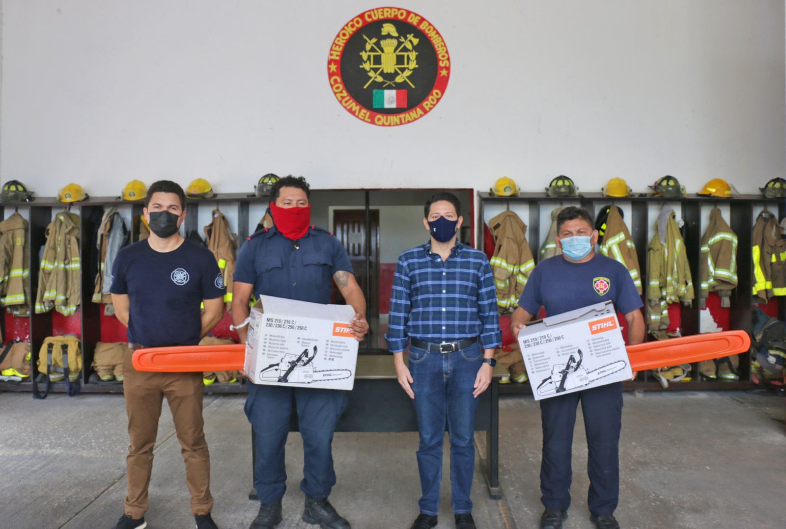 Al supervisar las instalaciones de Bomberos, el Secretario General escuchó a Francisco Escribano de la Cruz, quién a nombre de sus compañeros agradeció el reforzamiento del equipo con que laboran y que permitirá mejorar sus actividades de rescate en beneficio de las y los cozumeleños.