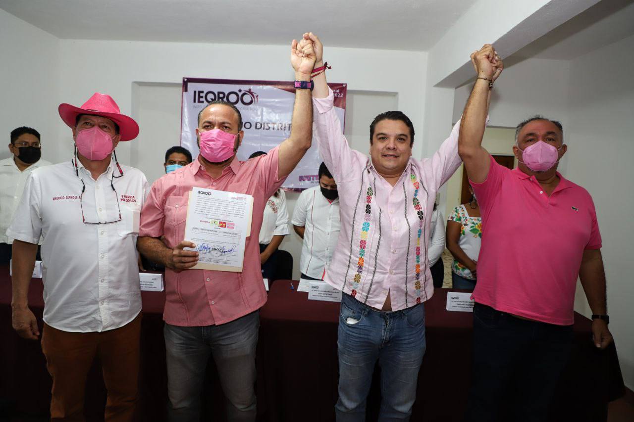 LÁZARO CÁRDENAS. Luego de recibir del Ieqroo su constancia que los acredita como candidatos de la coalición Juntos Hacemos Historia en Quintana Roo para contender por el Distrito 01 del estado, en los próximos comicios locales 2022, Julián Ricalde Magaña, afirmó que “tenemos la mejor fórmula de servicio porque somos gente de trabajo, de bien, interesada en trabajar para los quintanarroenses”.