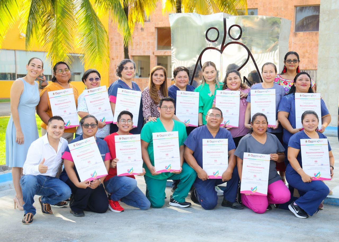 Chetumal.- Con motivo de la celebración del Día del Fisioterapeuta, la presidenta del Sistema DIF Quintana Roo, Verónica Lezama Espinosa visitó el Centro de Rehabilitación Integral de Quintana Roo (CRIQ), donde entregó de manera personal reconocimientos a las y los fisioterapeutas que atienden a pacientes en la capital del estado.