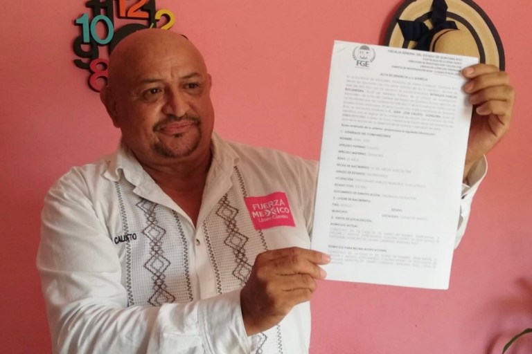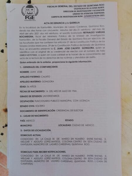 Ahora resalta el caso de Juan José Calixto Góngora, aspirante a la presidencia municipal de Lázaro Cárdenas por el partido Fuerza por México, quien reveló en rueda de prensa que interpuso una denuncia penal ante la FGE, luego de ser amenazado en la comunidad de Nuevo Xcan, en tanto que su hermana también acudió al Ministerio Público, luego de ser privada de su libertad.