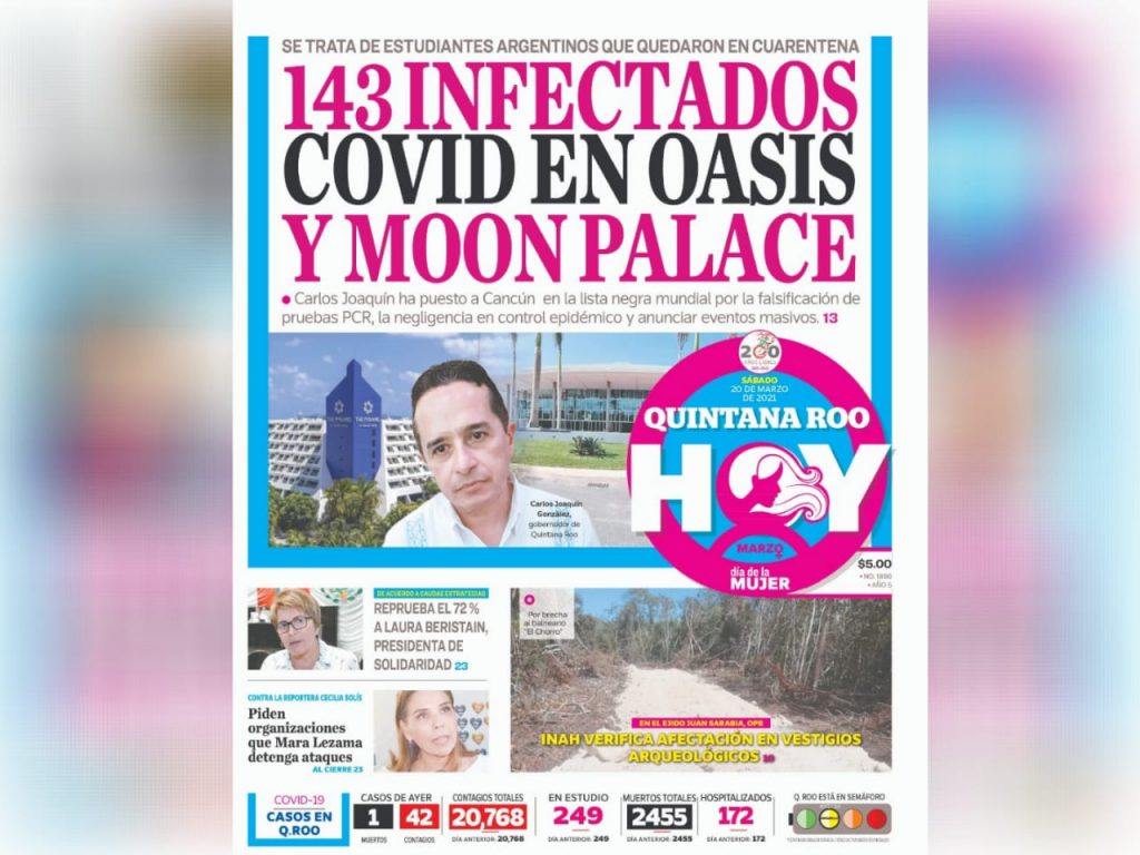 Se trata de los estudiantes argentinos que quedaron en cuarentena. Carlos Joaquín ha puesto a Cancún en la lista negra mundial por la falsificación de pruebas PCR, la negligencia en control epidémico y anunciar eventos masivos