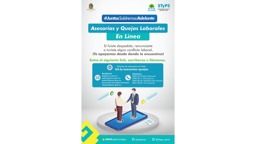 Como lo instruyó puntualmente el gobernador Carlos Joaquín, la Secretaría del Ttrabajo y Previsión Social del Estado (STyPS), ha implementado medidas y acciones para la protección, asesoría y representación en su caso de las y los trabajadores que sean despedidos de manera injustificada de sus centros laborales durante la crisis sanitaria del Covid-19.