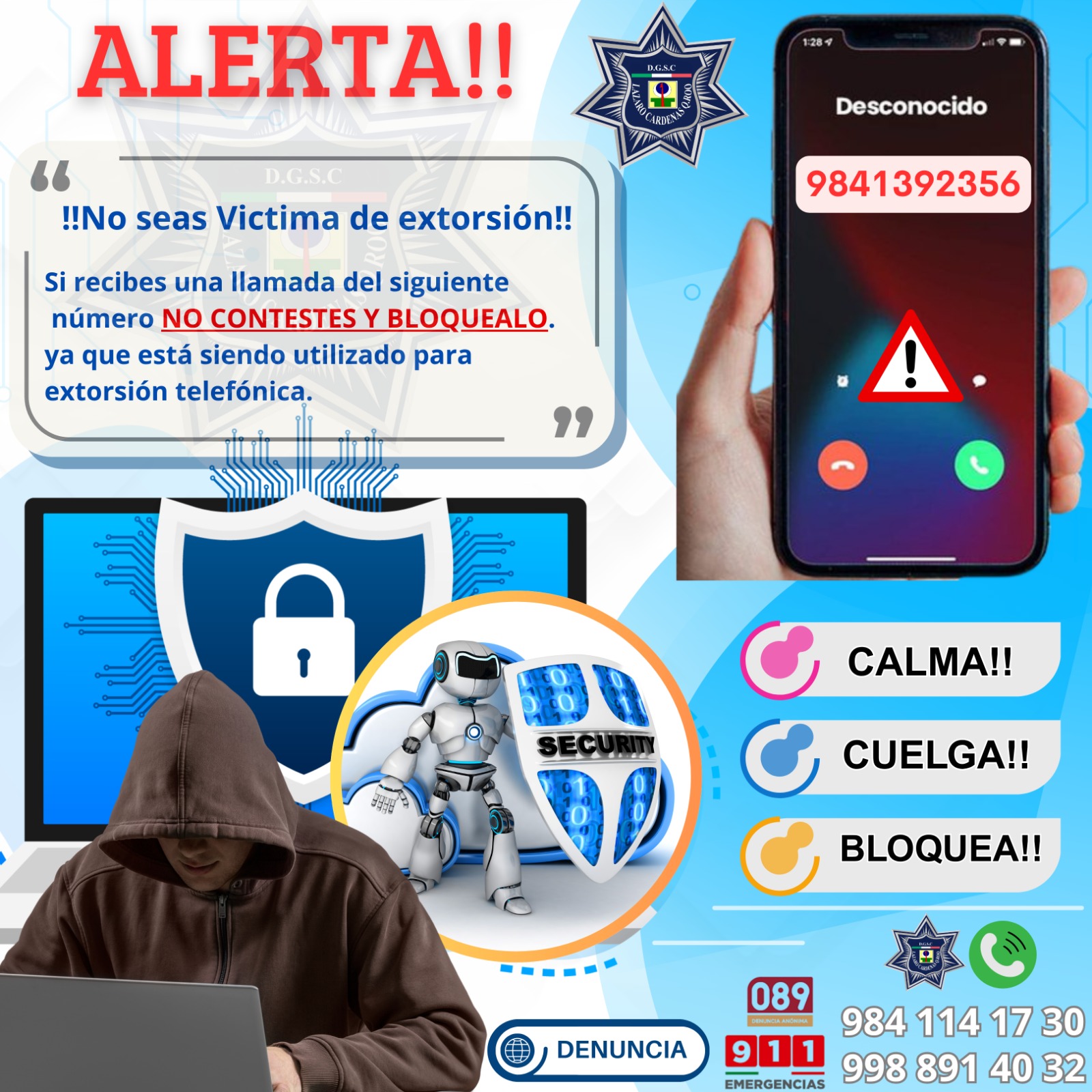 El anunció de la policía piden que no sean victimas de extorsión o en su caso reportarlo al número 911 o al 089, o a los números 984-114-1730 y 9988-9140-32.