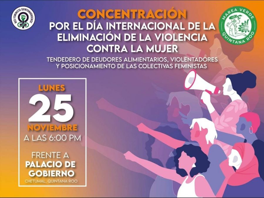 En Playa del Carmen, el colectivo “Siempre Unidas” organizó una concentración pacífica en la plaza “28 de Julio” programada a las 6 de la tarde, donde también se realizarán actividades artísticas y conservatorios.