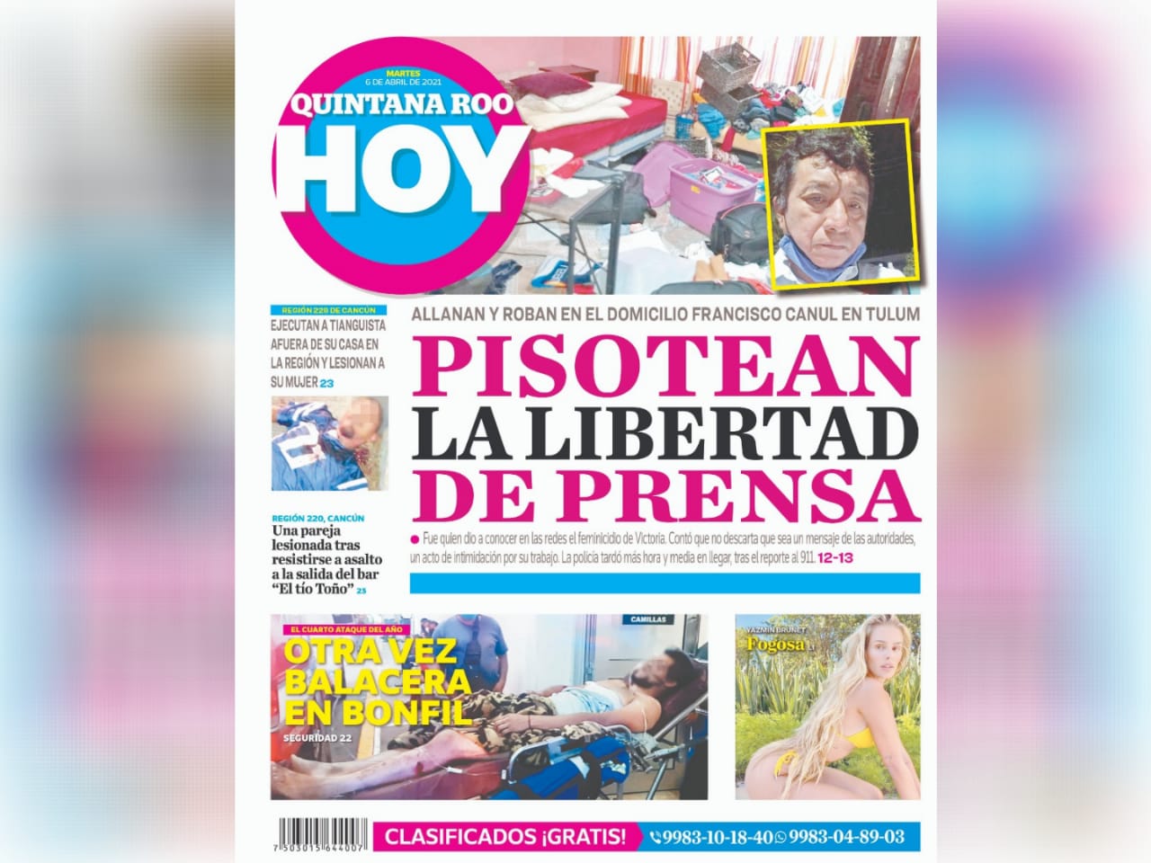 “Estaba todo revuelto, revisaron papeles hasta más no poder, por eso creo que fue más bien un atentado o acto de intimidación”, aseguró el afectado, quien lleva 22 años como periodista y quien ha documentado los actos de corrupción del gobierno estatal y principalmente del actual presidente municipal de Tulum, Víctor Mas Tah como el caso del crimen que cometieron cuatro policías municipales en contra de la salvadoreña Victoria Salazar.