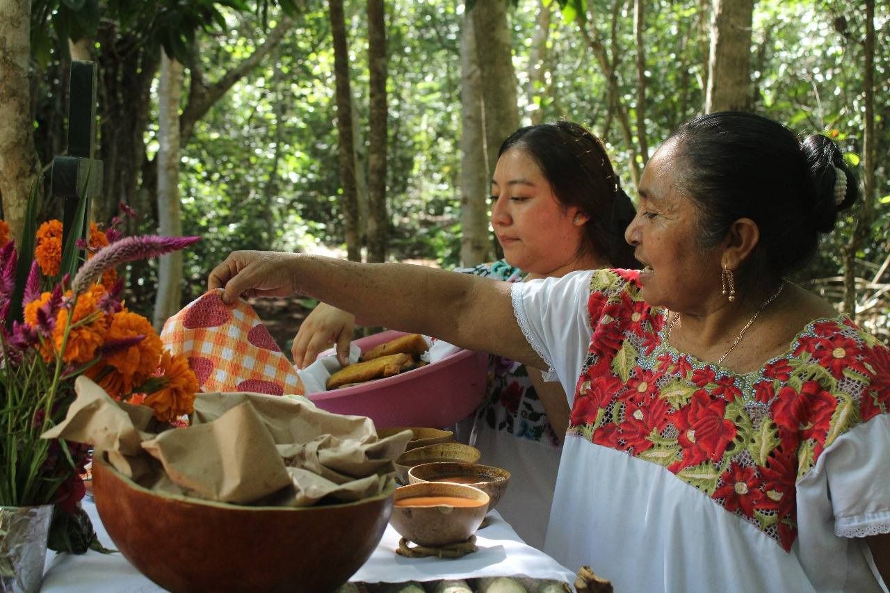 Felipe Carrillo Puerto.- Mientras que en las ciudades ya terminó la celebración de día de muertos dando paso a otra celebración como la navidad, en las comunidades se vive en su apogeo el día de muertos con el tradicional Bix en la que el principal alimento que se pone en el altar son chahakuajes o tamales en pib.