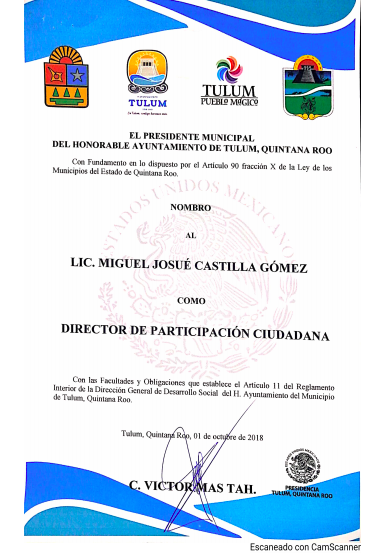 Miguel Josué Castilla Gómez, fue director de Participación Ciudadana del municipio de Tulum