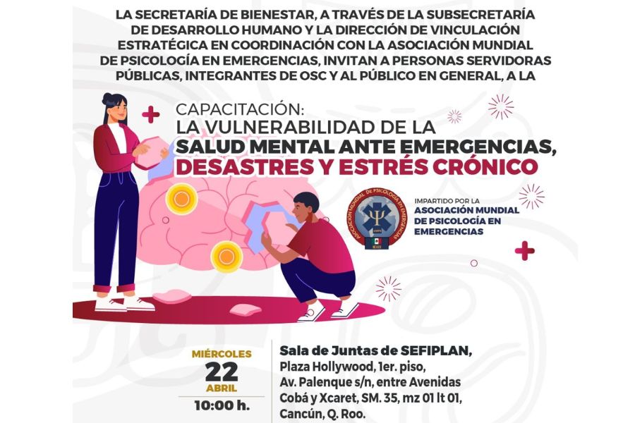 Recientemente se organizó la capacitación “La vulnerabilidad de la salud mental ante emergencias, desastres y estrés crónico” en Plaza Hollywood, Cancún.