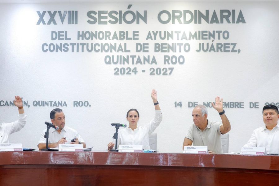“Somos el primer municipio de nuestro estado en aprobar justamente este reglamento, que es parte de la estrategia nacional de construcción de paz, de nuestra presidenta Claudia Sheinbaum Pardo, y de la coordinación que encabeza nuestra gobernadora Mara Lezama en Quintana Roo, nos homologamos justamente a esta política nacional”, dijo.
